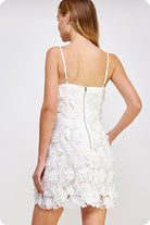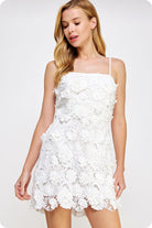 Step into romance with the Liah Dress in white. Crafted with 3-D flower crochet lace, it offers sweet texture and charm. Adjustable straps and a square neckline keep the fit just right, while the back zipper adds a sleek finish.