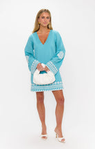 The Malia Mini Dress is your breezy, beachside bestie. With its relaxed boho-chic fit and playful shell trim, it’s perfect for vacay strolls or stepping away from your pool chaise in style. Wear it loose for an effortless, flowy vibe or cinch the detachable tie for a more defined shape!