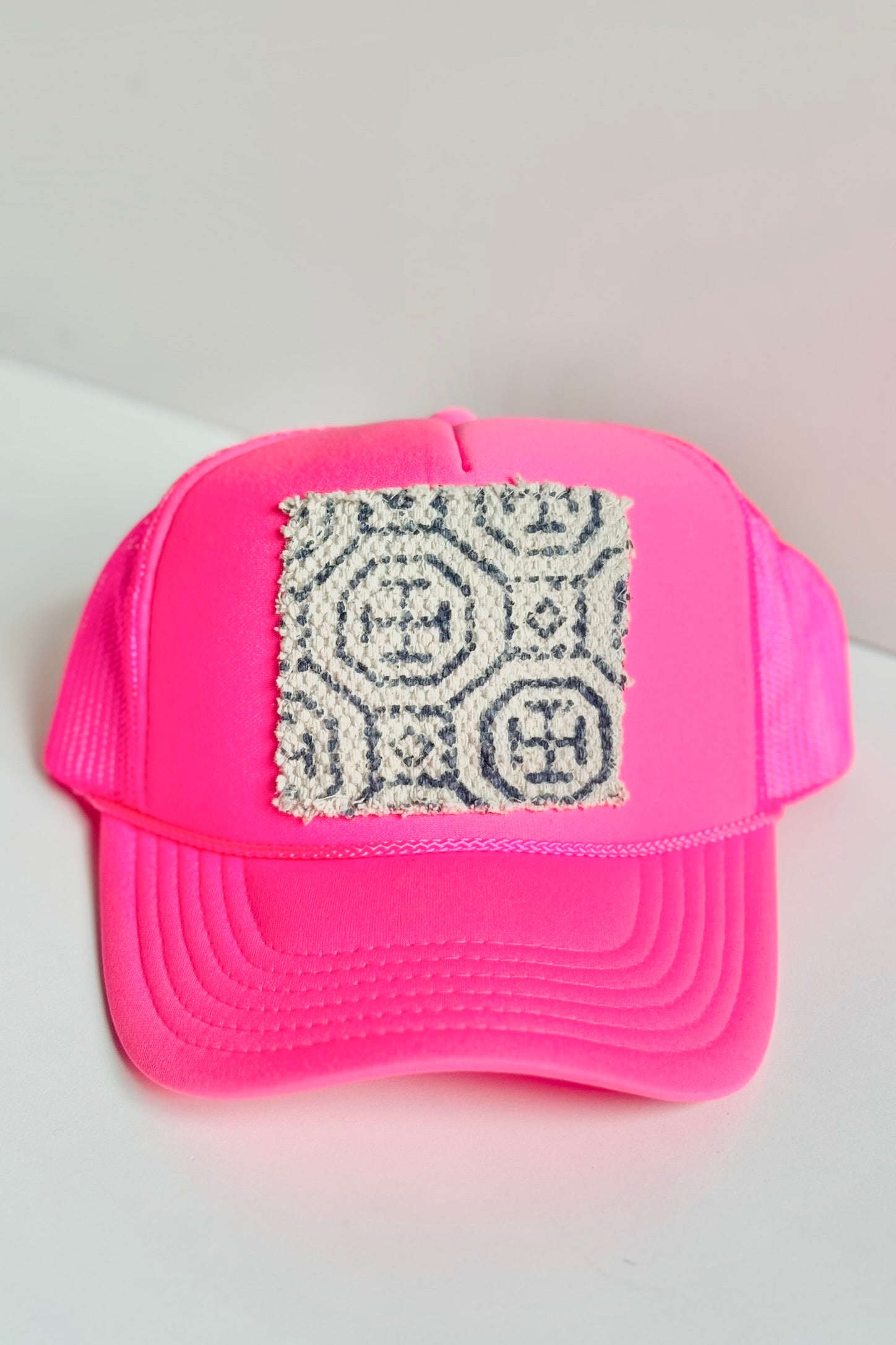 Your easy, throw-on-and-go, trucker with Turkish kilim patch. No two are alike! One size hat with high crown, structured bill and mesh back with adjustable snaps.