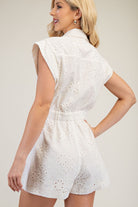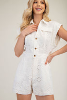 Step into sunshine with the Rosa Romper in cream! Featuring a flirty V-neck collar, handy pocket, and charming eyelet details, this romper combines comfort with playful style. Perfect for carefree days where fun meets effortless fashion.