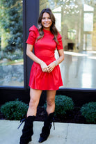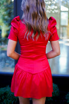 Shimmer and shine in our Scottie Dress! This stunning dress features a stretch satin metallic finish, accentuating your curves while ensuring utmost comfort. The dropped waist and ruffled hem add a playful touch, while the ruffle puff shoulder sleeves and high neck collar exude elegance. Complete with a back zipper for easy wear. Be the star of the night!