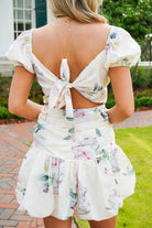 Introducing the Theresa Mini Dress - a sweet and sultry addition to your wardrobe. The butter yellow cream puff fabric pairs perfectly with the v-neckline, ruched bodice, and pleated bubble skirt hem. The open back with wrap bow closure adds a touch of charm. Perfect for any occasion!
