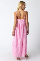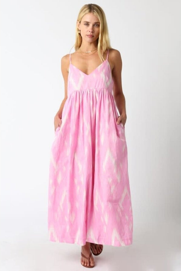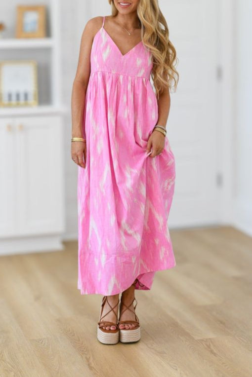 Get ready to turn heads in the Wendie Mini Dress! This pink and cream abstract printed dress features a flattering v-neckline, adjustable thin shoulder straps, and a high empire waistline, giving you a stunning silhouette. Plus, with convenient side pockets, this sleeveless midi dress is both stylish and functional. Elevate your wardrobe with this must-have dress.