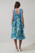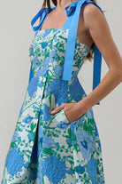 Look elegant and charming with the Willa Floral Dina Pleated Midi Dress. A floral jacquard print created this midi dress with tie straps, a belt around the waist, and a pleated bottom skirt. The back has an invisible zipper. Wear this dress to your next event.