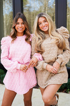 Get ready for a stylish adventure with our Worth Set! This playful set includes a quilted puff sleeve sweater and a matching skort for a unique and quirky look. Stay cozy and chic with this must-have set!