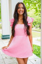 Get ready to turn heads in our Yvonne Mini Dress! This sleeveless fit and flare dress features flutter sleeves and a square neckline for a feminine touch. The open back with cut out detail adds a subtle yet alluring element. Perfect for any occasion, this dress will make you feel confident and stylish!