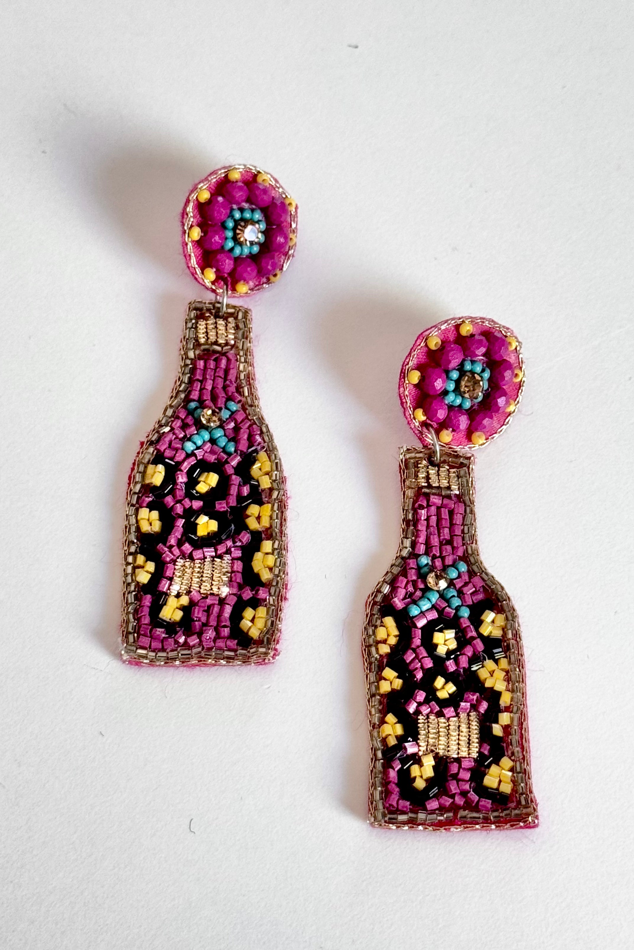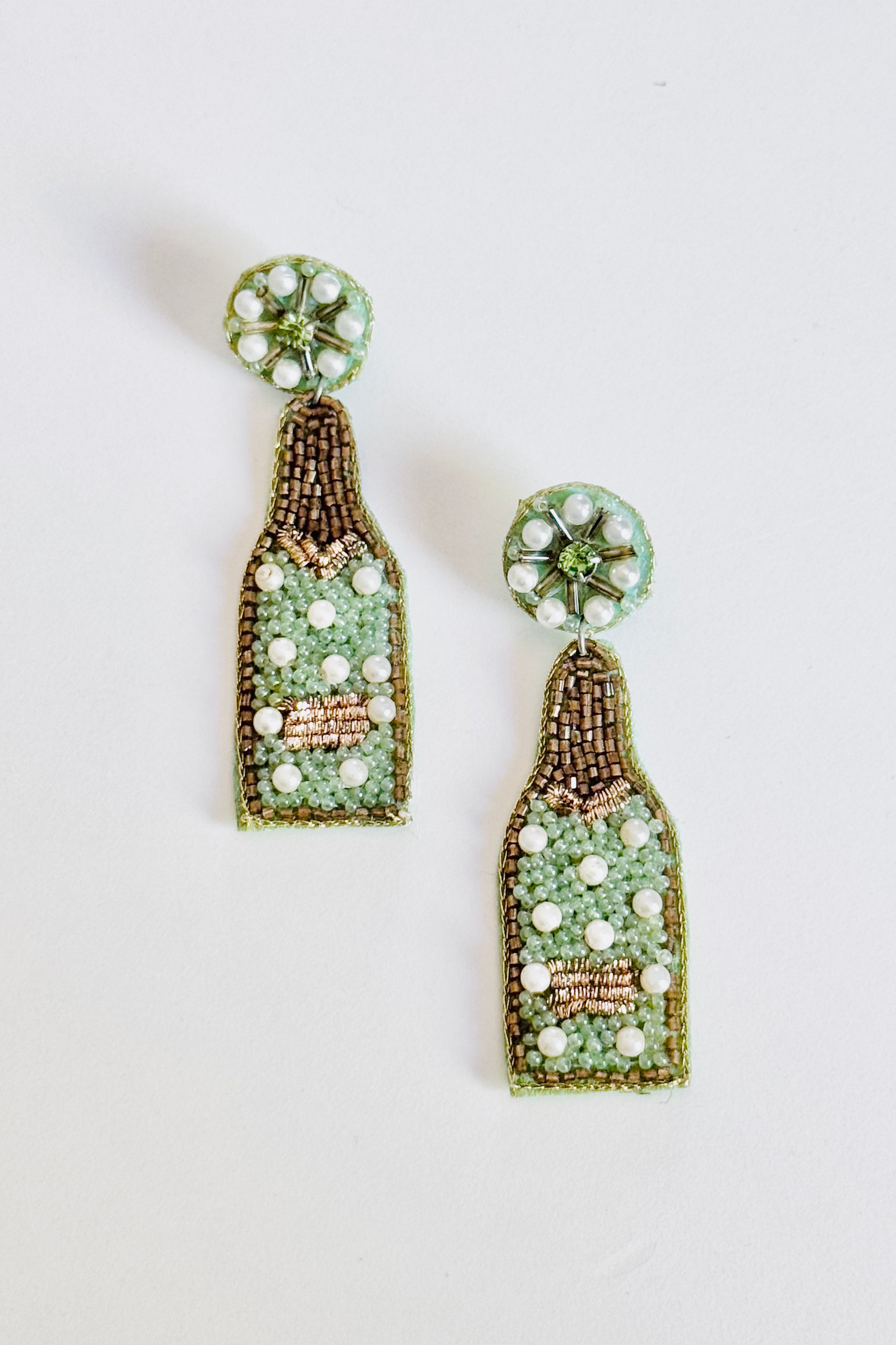 Green Pearl Champagne Bottle Earrings - FINAL SALE