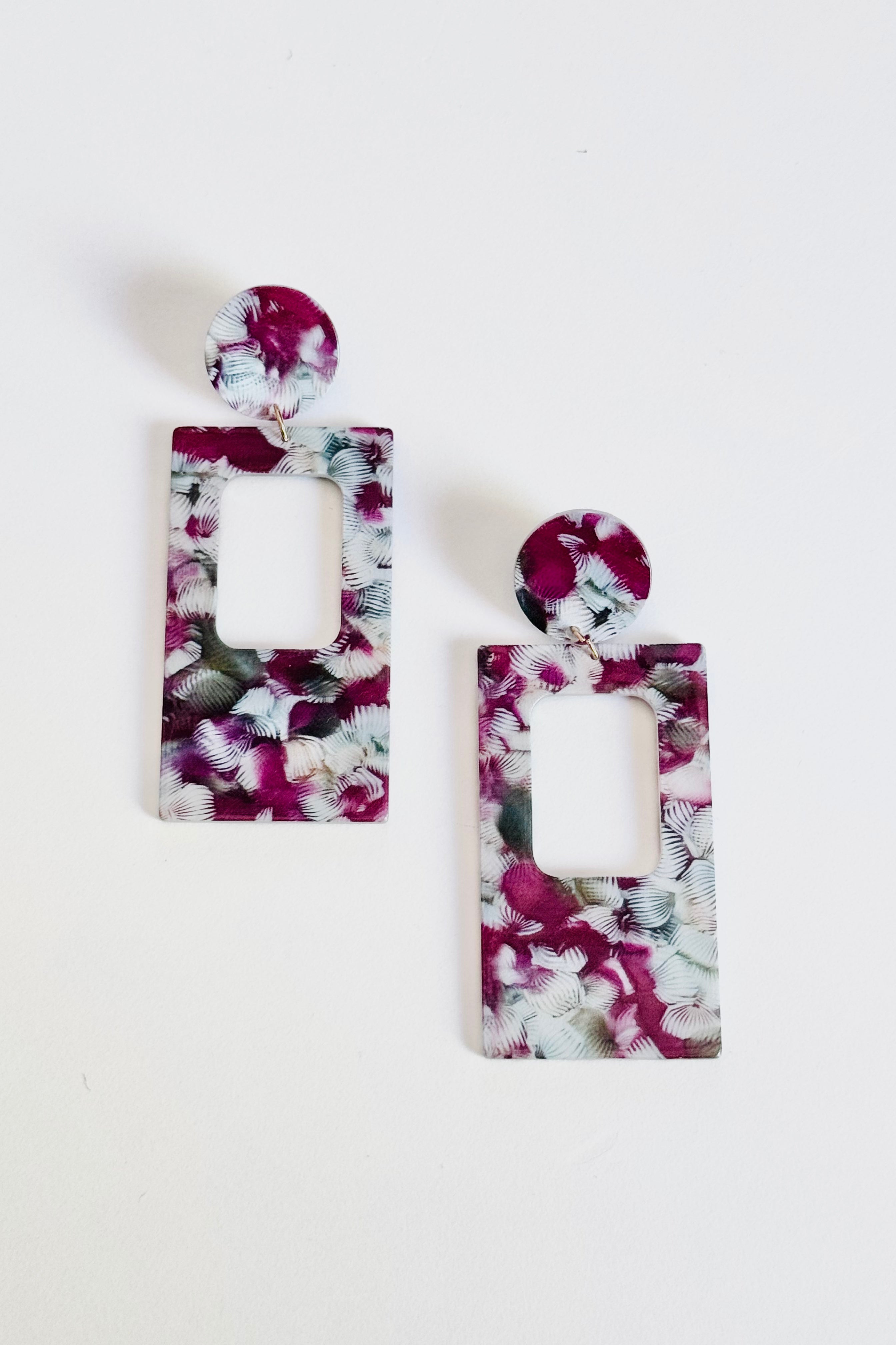 Purple/Blue Floral Acrylic Earrings - FINAL SALE