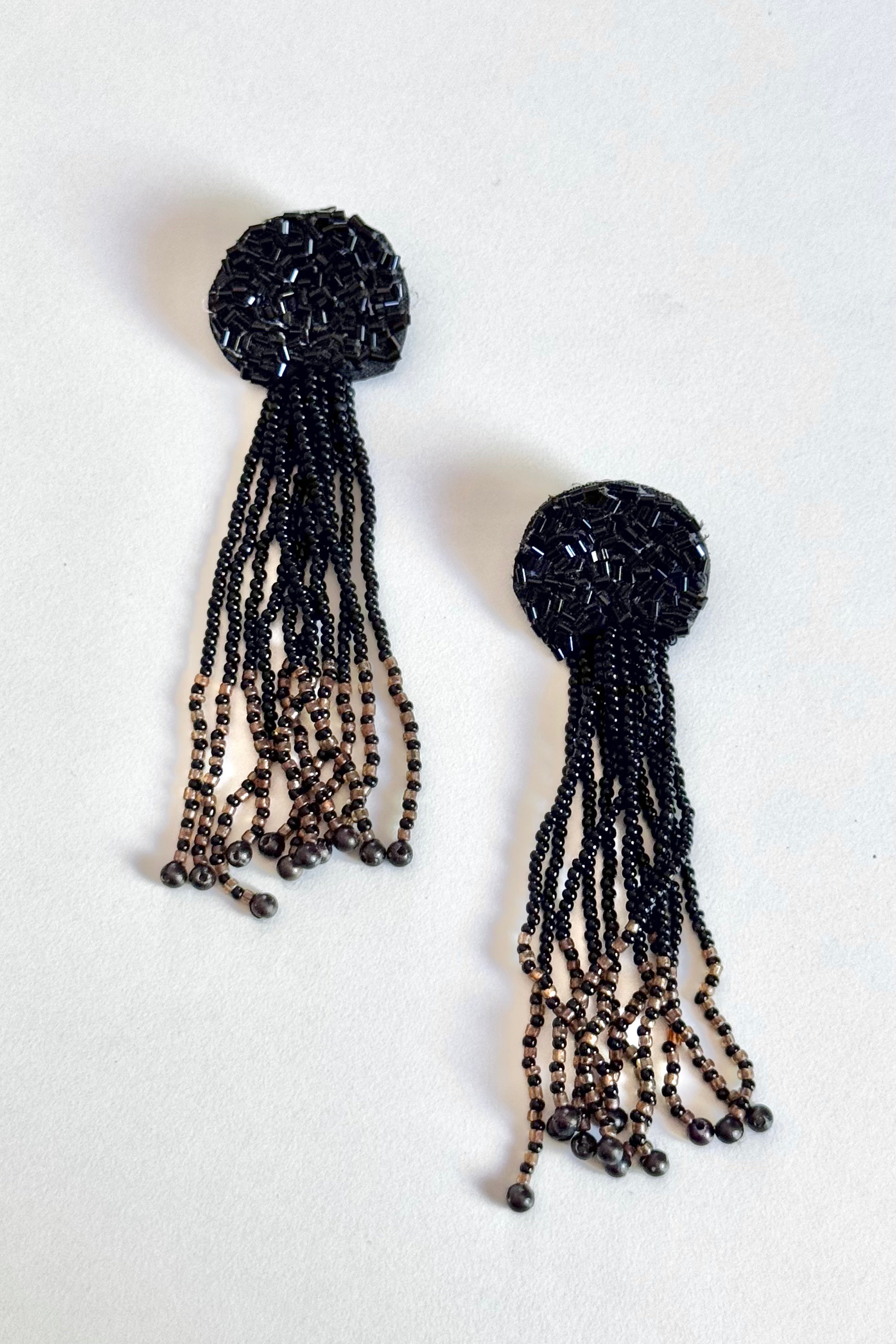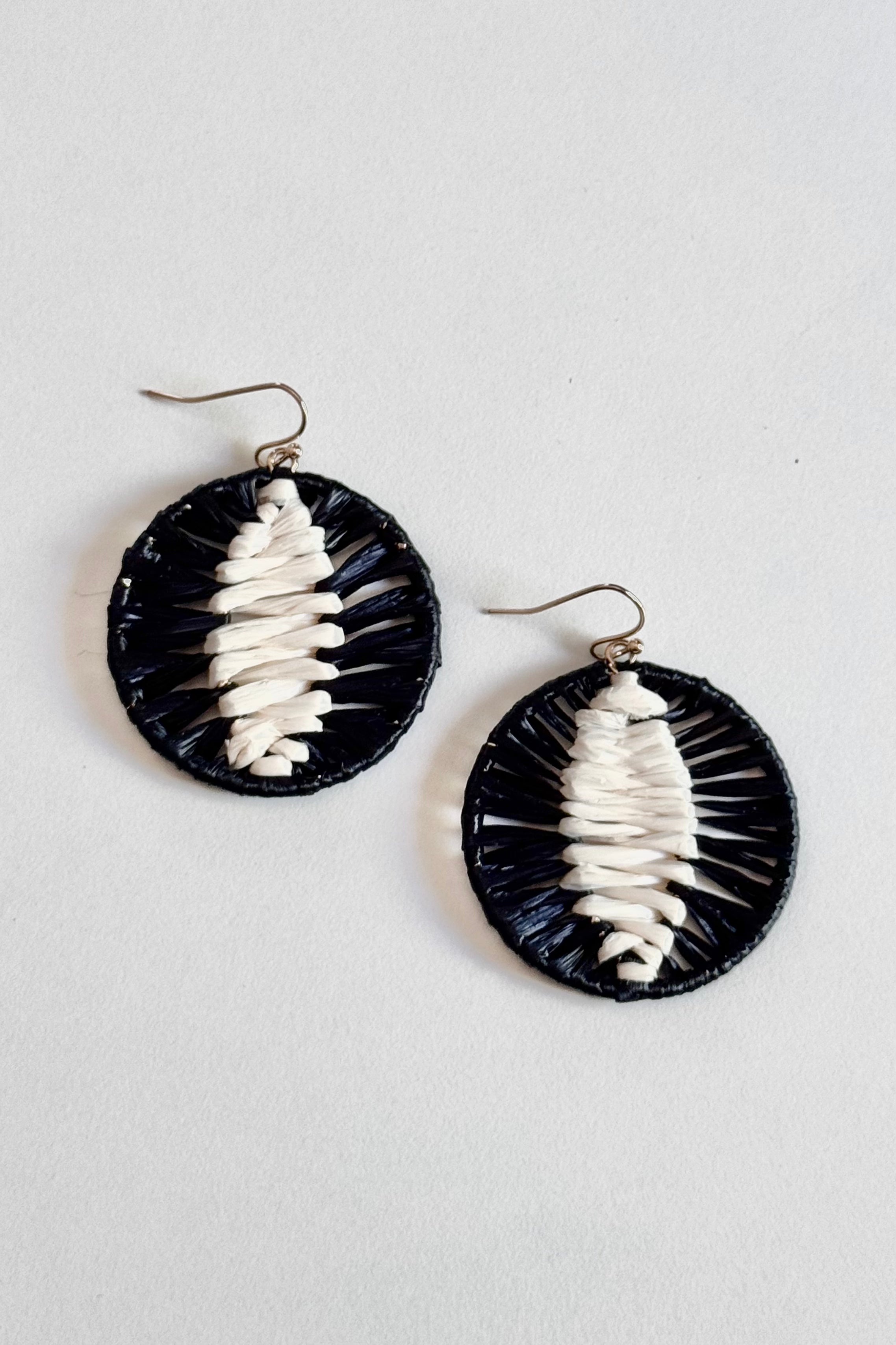 Two-Toned Raffia Earrings - Black - FINAL SALE