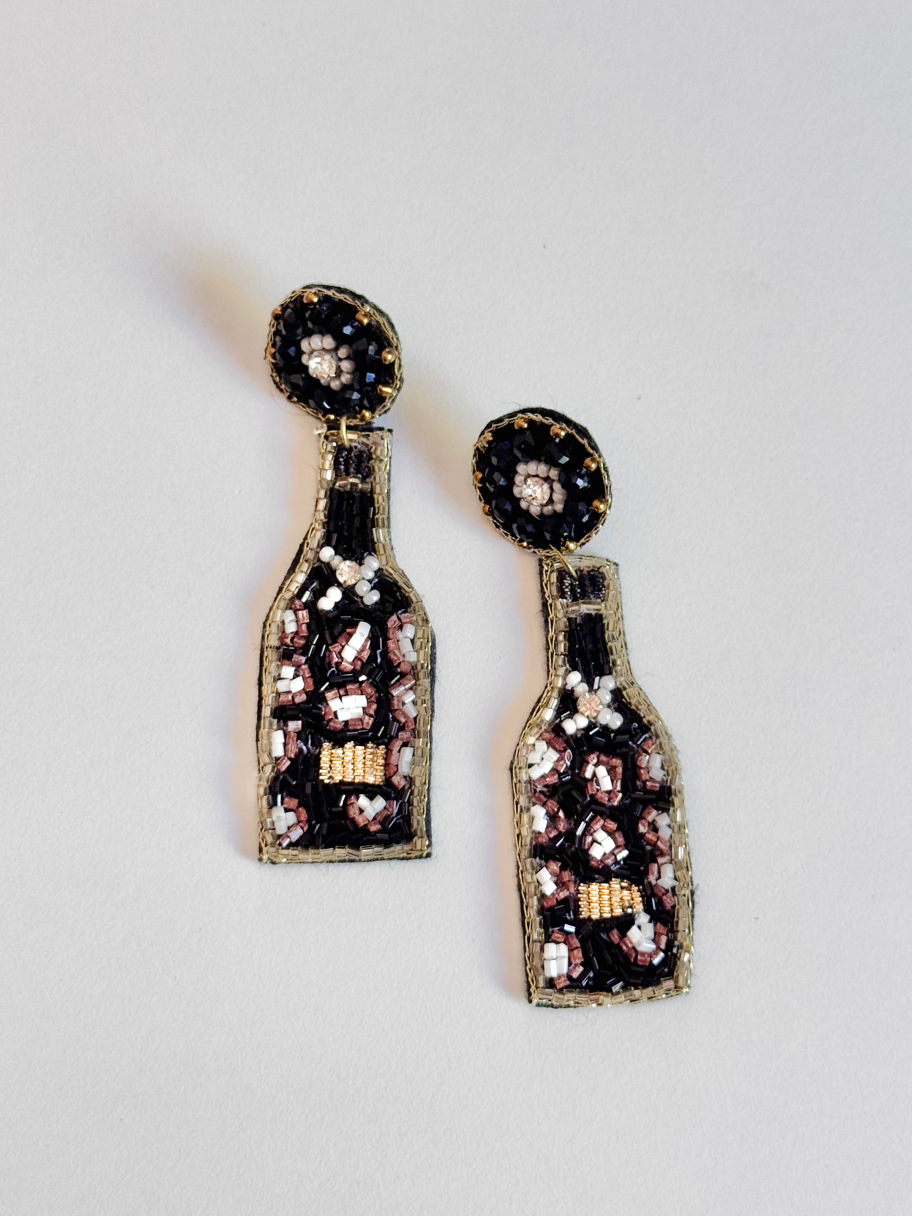 Black Pearl Champagne Bottle Earrings - FINAL SALE