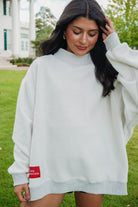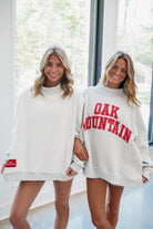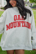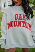Stay cozy and stylish with this soft, heather grey fleece sweatshirt featuring a high mock neck for extra warmth. Its oversized fit offers comfort and a relaxed vibe, while the varsity-style lettering in OAK MOUNTAIN on the front adds a chic touch. Flip it inside out to reveal the reversible side with bold woven patch label—two looks in one playful sweatshirt perfect for everyday or lounging around!