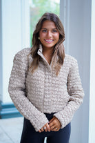 This taupe Faith Jacket is not your average puffer jacket! The cropped design, quilted texture, and high collar neckline make it stylish and unique. With a full front zipper and snap button closure, it's also functional and perfect for keeping warm. Stay cozy and fashionable in the Faith Jacket!