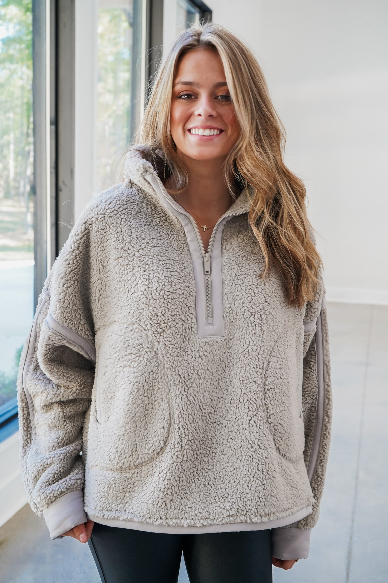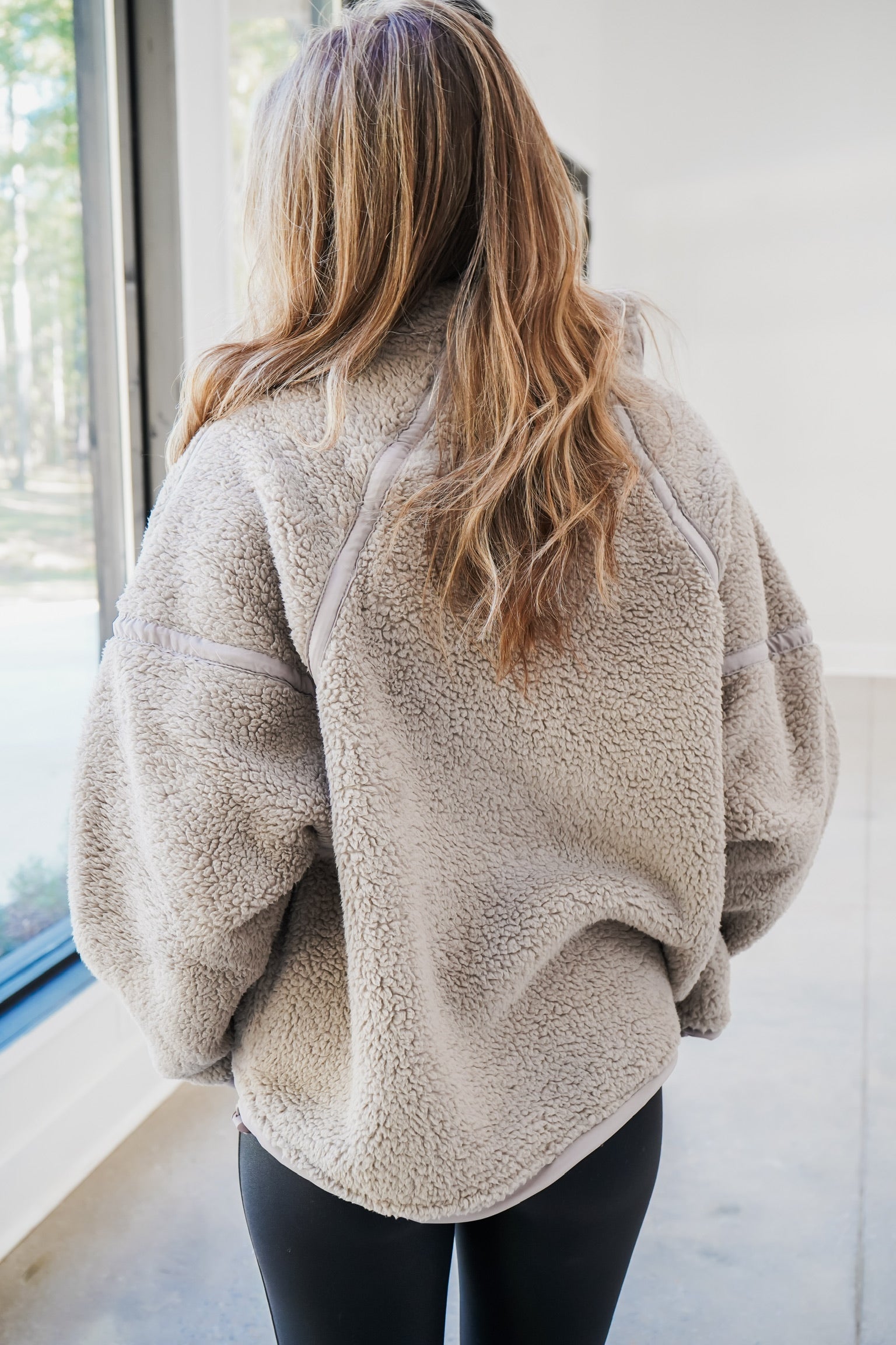 Stay cozy and stylish with the Luckie Jacket! Featuring a snug sherpa mock neck and a handy quarter zip for easy layering, this jacket also offers front side pockets to keep your hands warm or stash your essentials. The drawstring cinch waist adds a fun, adjustable fit that lets you customize your look while keeping the chill out. Perfect for those playful outings when comfort meets cool!