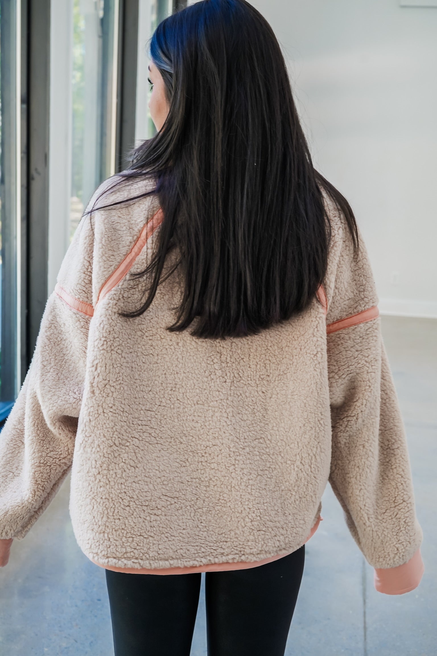 Stay cozy and stylish with the Luckie Jacket! Featuring a snug sherpa mock neck and a handy quarter zip for easy layering, this jacket also offers front side pockets to keep your hands warm or stash your essentials. The drawstring cinch waist adds a fun, adjustable fit that lets you customize your look while keeping the chill out. Perfect for those playful outings when comfort meets cool!