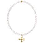 ENewton Classic Pearl 3mm Bracelet - Signature Cross 4mm Beaded Gold Charm