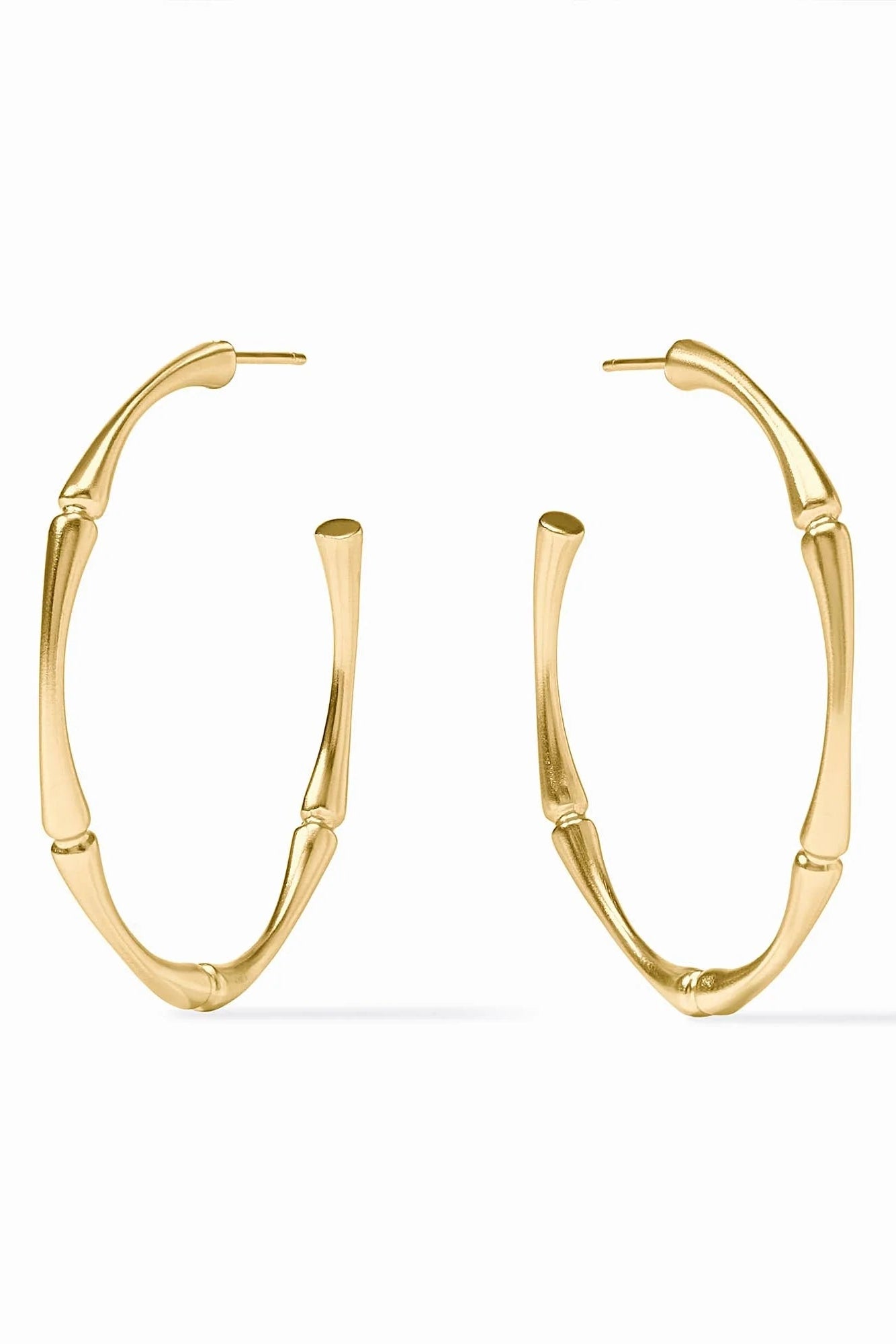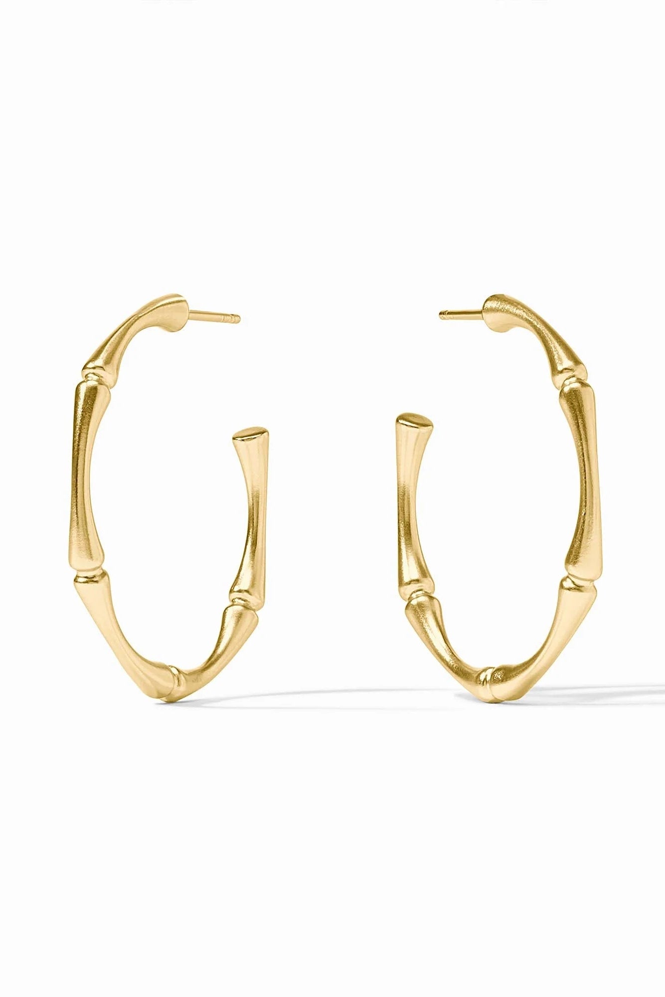 Symbolic of longevity and success, bamboo comes to life in each size of these sleek and slender golden hoops.