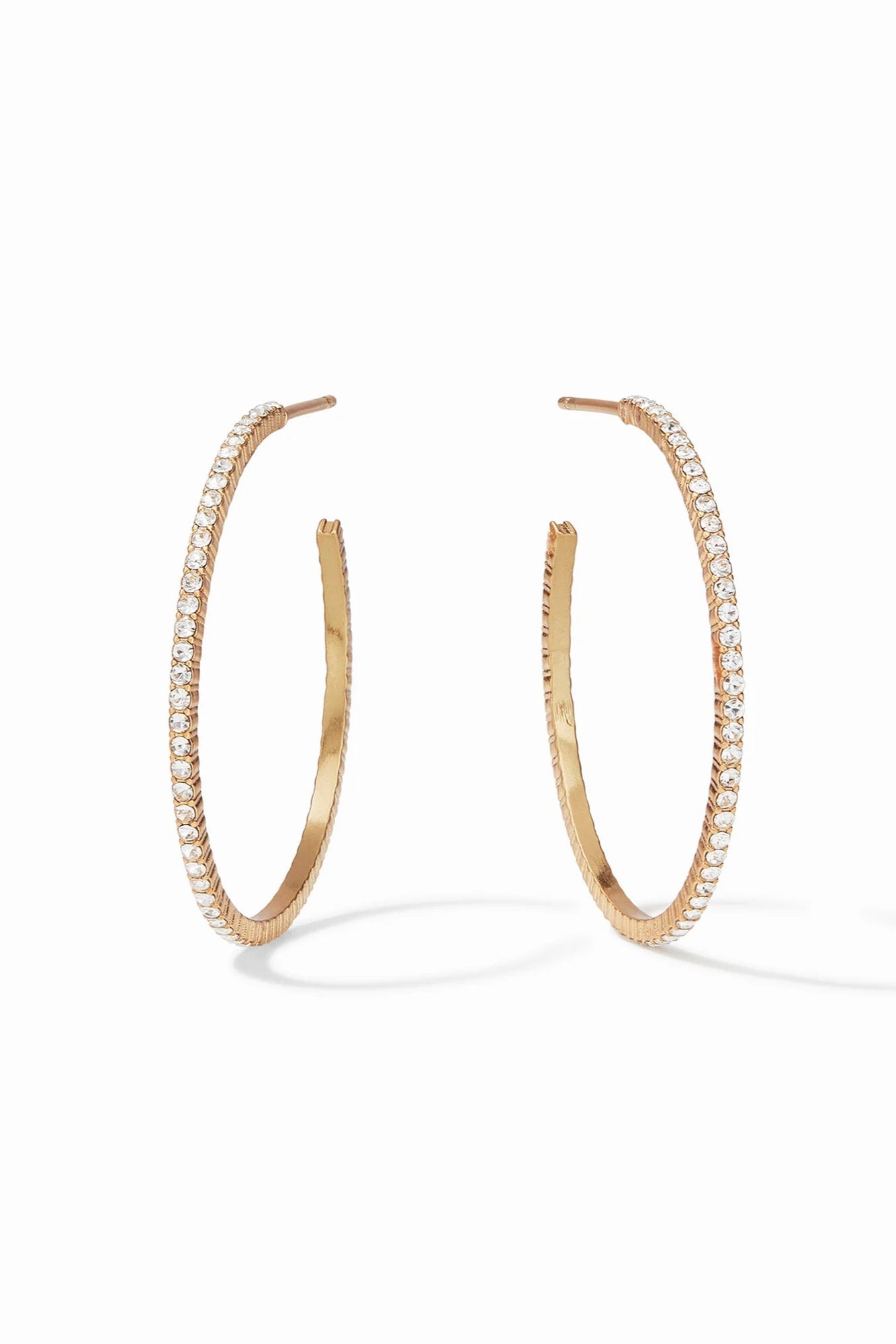 Sparkle and shine in a pair of striking CZ hoop earrings adorned with pavé CZ. These slender, thin hoops are available in four different sizes.