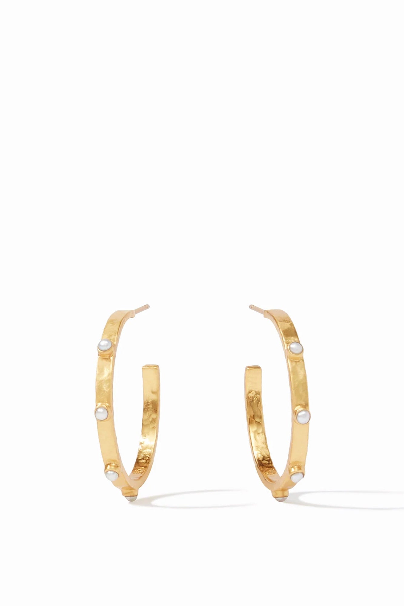 JULIE VOS Crescent Stone Hoop - Pearl (Medium)