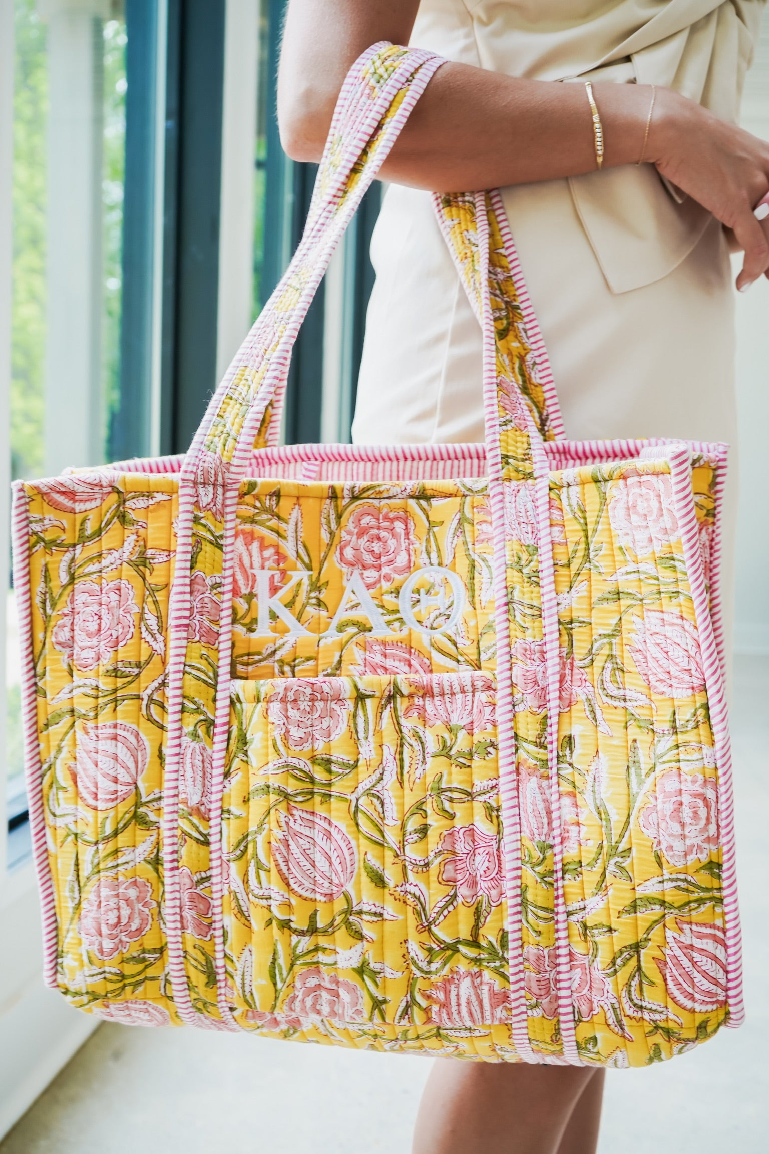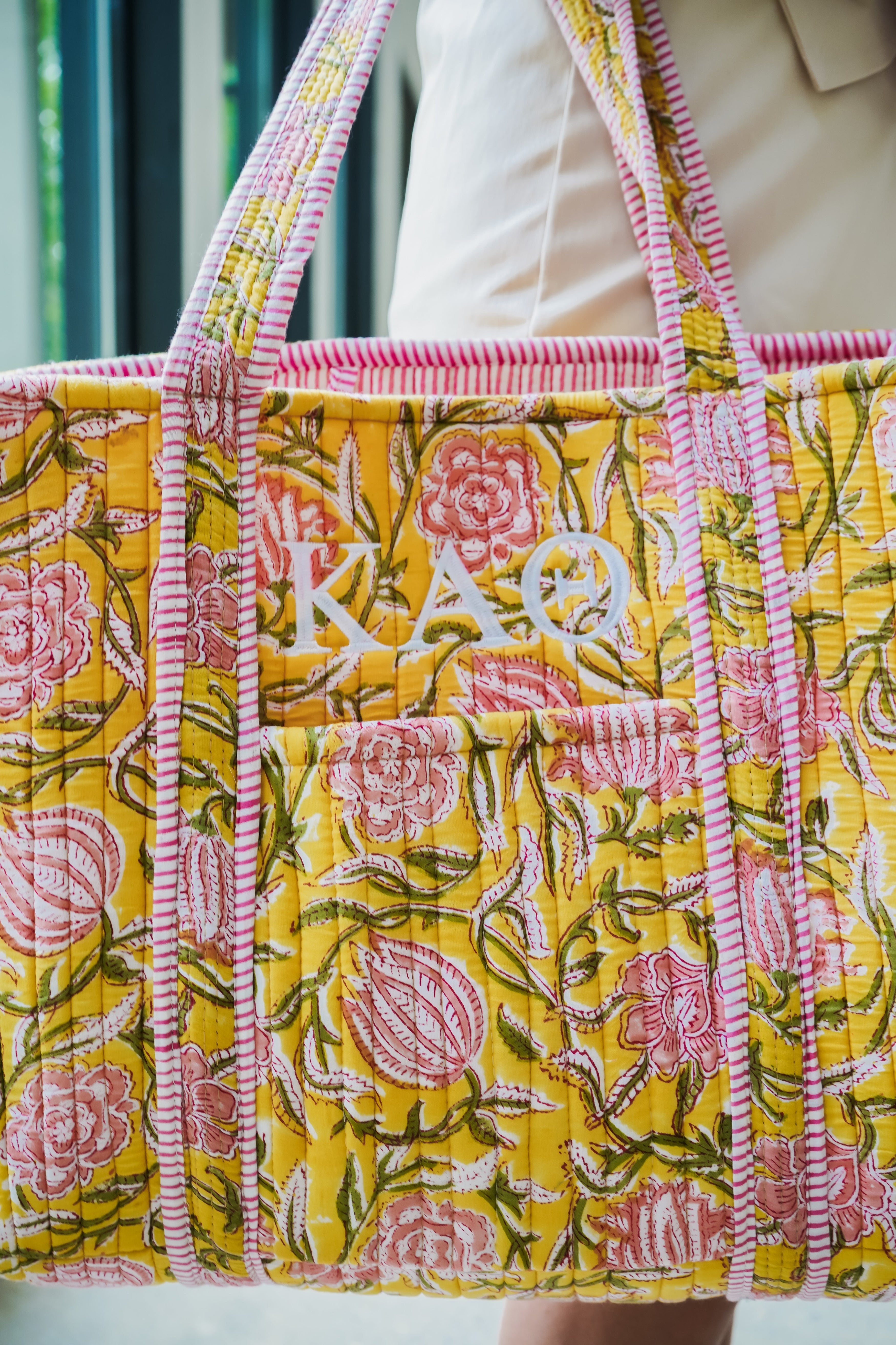 100% Cotton. Size: 17″x 14″ x 6" Embroidered with Greek sorority letters!