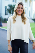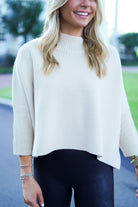 Oversized boxy sweater with fitted rib turtleneck & 3/4 sleeves