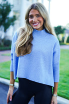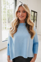 Oversized boxy sweater with fitted rib turtleneck & 3/4 sleeves