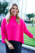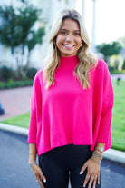 Oversized boxy sweater with fitted rib turtleneck & 3/4 sleeves