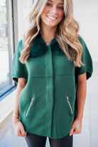 Faux Fur Trim Cardigan - Green