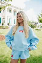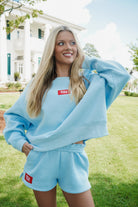 Get game day ready with this playful and comfy set! The slightly cropped crewneck sweatshirt pairs perfectly with wide elastic waistband shorts, both crafted from super soft, airy fabric that keeps you cool and light. Featuring a bold contrast patch with "ROLL TIDE," this true-to-size set is perfect for cheering in style and comfort.