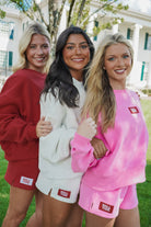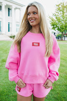 Get game day ready with this playful and comfy set! The slightly cropped crewneck sweatshirt pairs perfectly with wide elastic waistband shorts, both crafted from super soft, airy fabric that keeps you cool and light. Featuring a bold contrast patch with "ROLL TIDE," this true-to-size set is perfect for cheering in style and comfort.