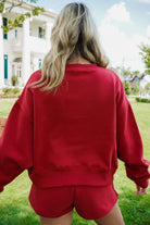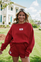 Celebrate game day in style with the Alabama Game Day Sweat Set! This playful two-piece features a super soft fleece, a slightly cropped sweatshirt with a boxy fit, and a high-quality contrast woven patch label proudly displaying "ROLL TIDE." The matching sweat shorts come with an elastic waistband for comfort and a perfect fit. True to size and designed for cozy, spirited days cheering on your team!