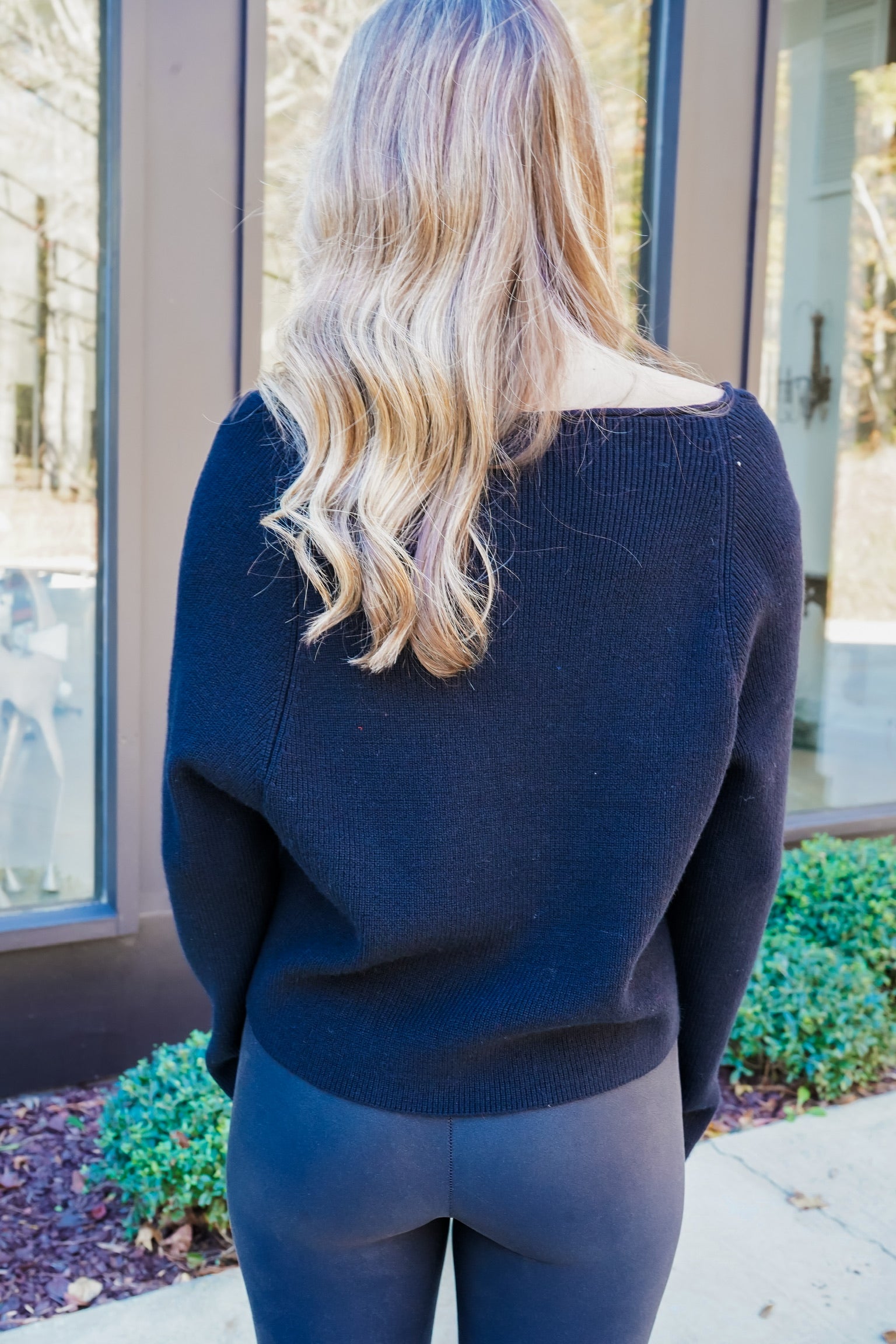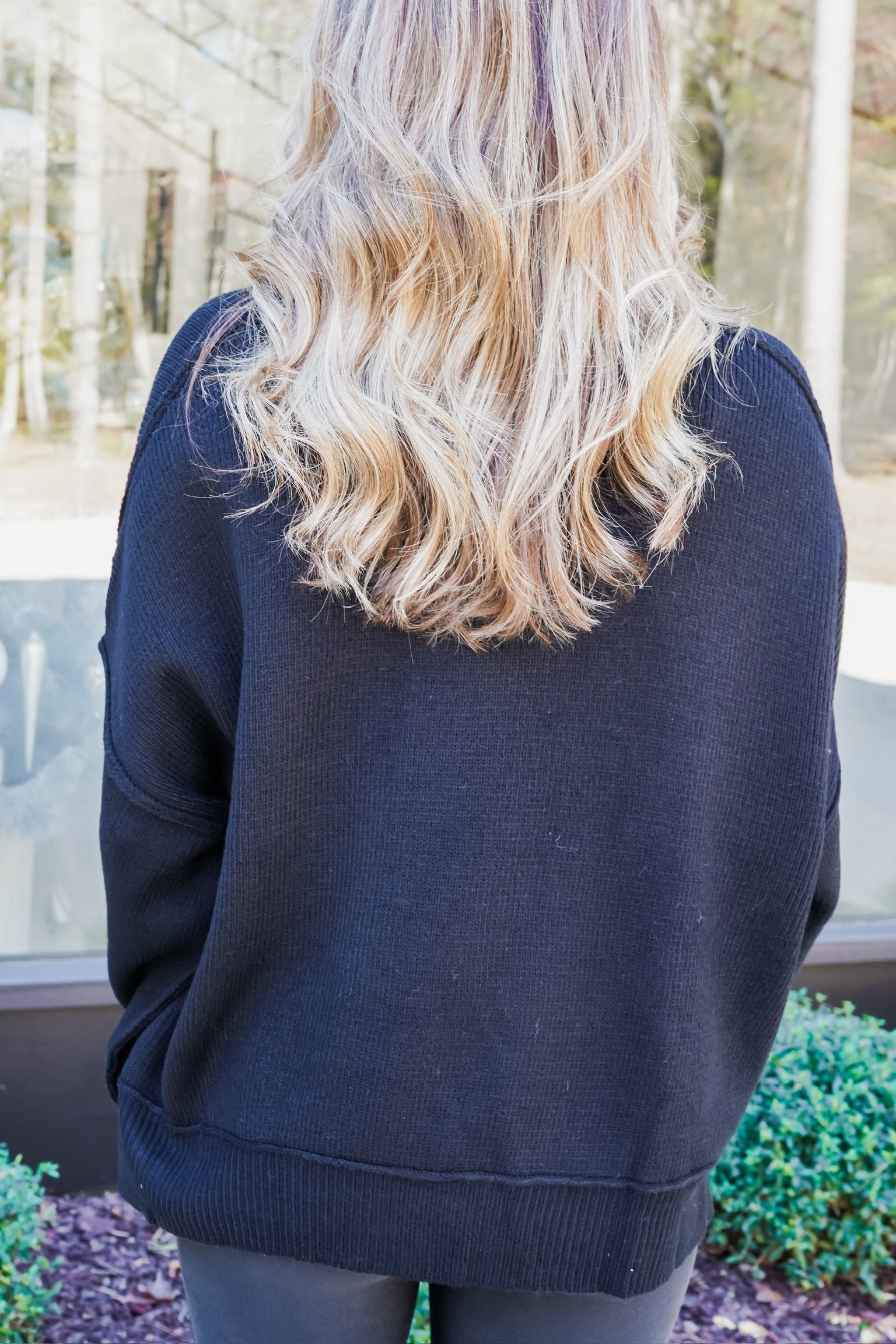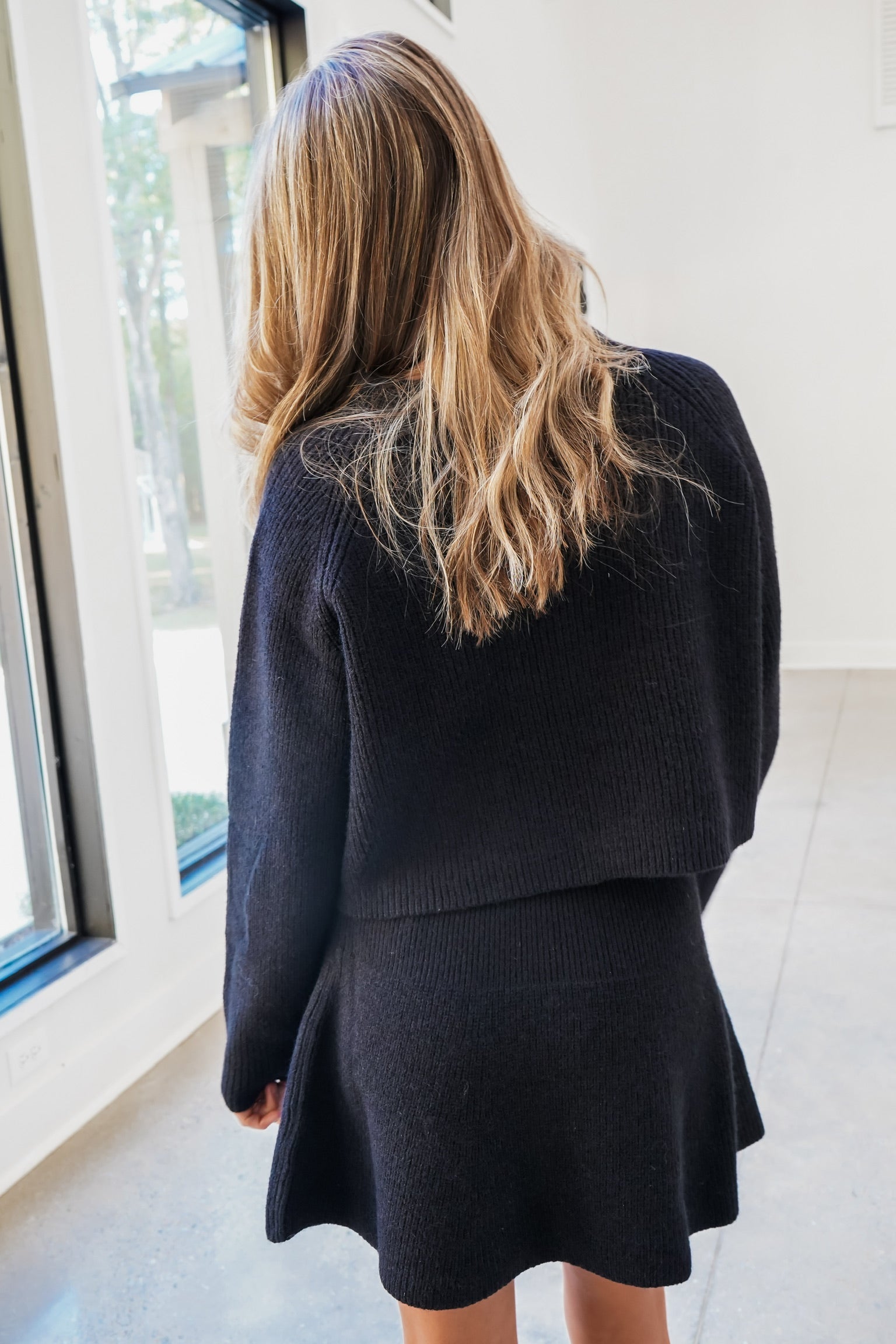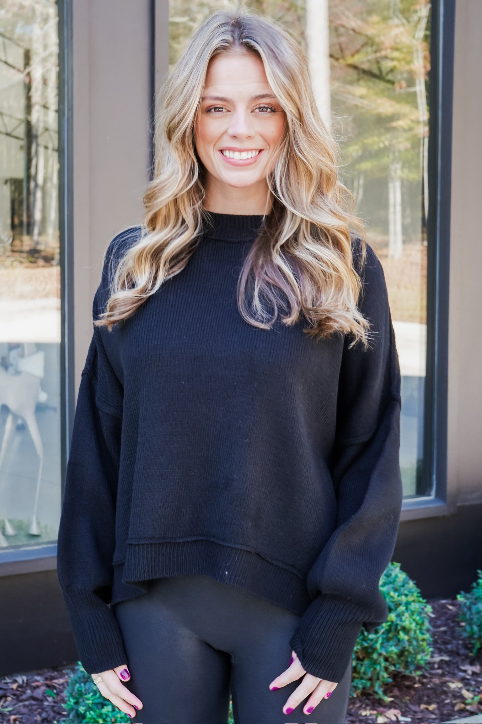 Wide Sleeve Turtleneck Sweater Tunic - Black