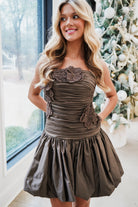 Slip into the Leone Mini Dress and get ready to dazzle! This olive green stunner features a strapless, sleeveless design that's all about confidence. The accordion pleated bodice brings textural interest, while charming flower appliqués sprinkle in just the right amount of whimsy. A bubble skirt hem adds flirty movement, and the smocked back panel with convenient zipper ensures a custom fit that feels as good as it looks. Your go-to dress for unforgettable moments.