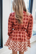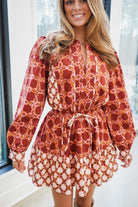 The Lillian Mini Dress is your new go-to for effortless style with serious personality. This playful piece features a stunning abstract print in pink, burgundy, and brown that demands attention. The flattering split V-neckline adds a flirty touch, while the drawstring closure and elastic waistline let you customize your fit for all-day comfort. Practical side pockets keep your essentials close, and the built-in lining ensures you're covered. Perfect for dressing up or down, this long-sleeve mini dress brings artistic flair to any occasion.