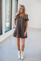 This playful Nova Mini Dress features an oversized sailor collar and short sleeves, adding a fun twist to a classic shape. The leopard wash print brings wild energy to your look, while the tie detail allows you to customize your fit. Perfect for turning heads and embracing bold style with ease!