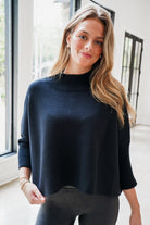Oversized boxy sweater with fitted rib turtleneck & 3/4 sleeves