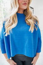 Oversized boxy sweater with fitted rib turtleneck & 3/4 sleeves