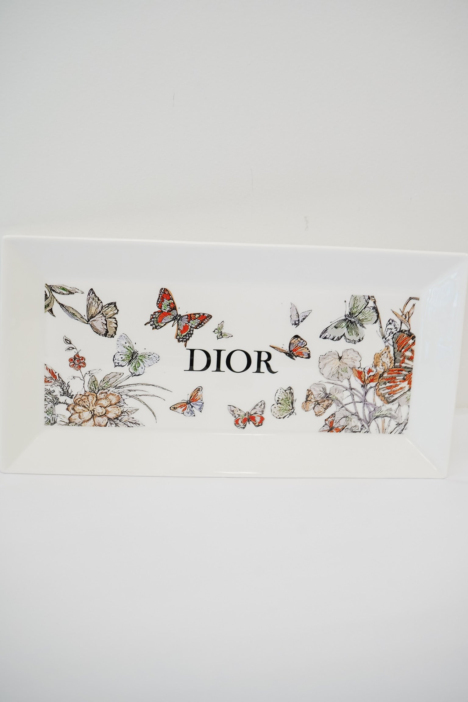 Spice up your serving game with our Ceramic Serving Tray! This off-white rectangle tray features a playful multi-colored butterfly design that is sure to impress. The glazed finish adds an extra touch of elegance. Serve with style and personality. (14" x 7")