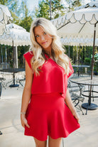 Get ready to turn heads with the Charlotte Set—featuring a cozy red sleeveless v-neck sweater top paired perfectly with a flared mini skirt. This duo effortlessly blends comfort and flirty style, making it ideal for sunny days or casual nights out. Let your playful side shine while staying chic and comfy all day long.