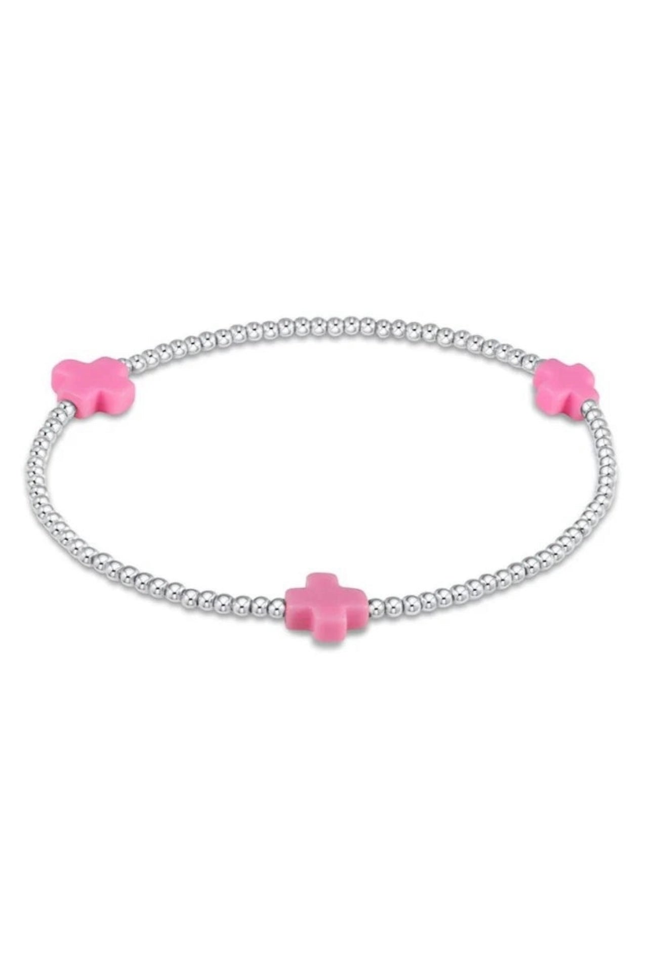 ENewton Signature Cross Sterling Pattern 2mm Bead Bracelet - Bright Pink