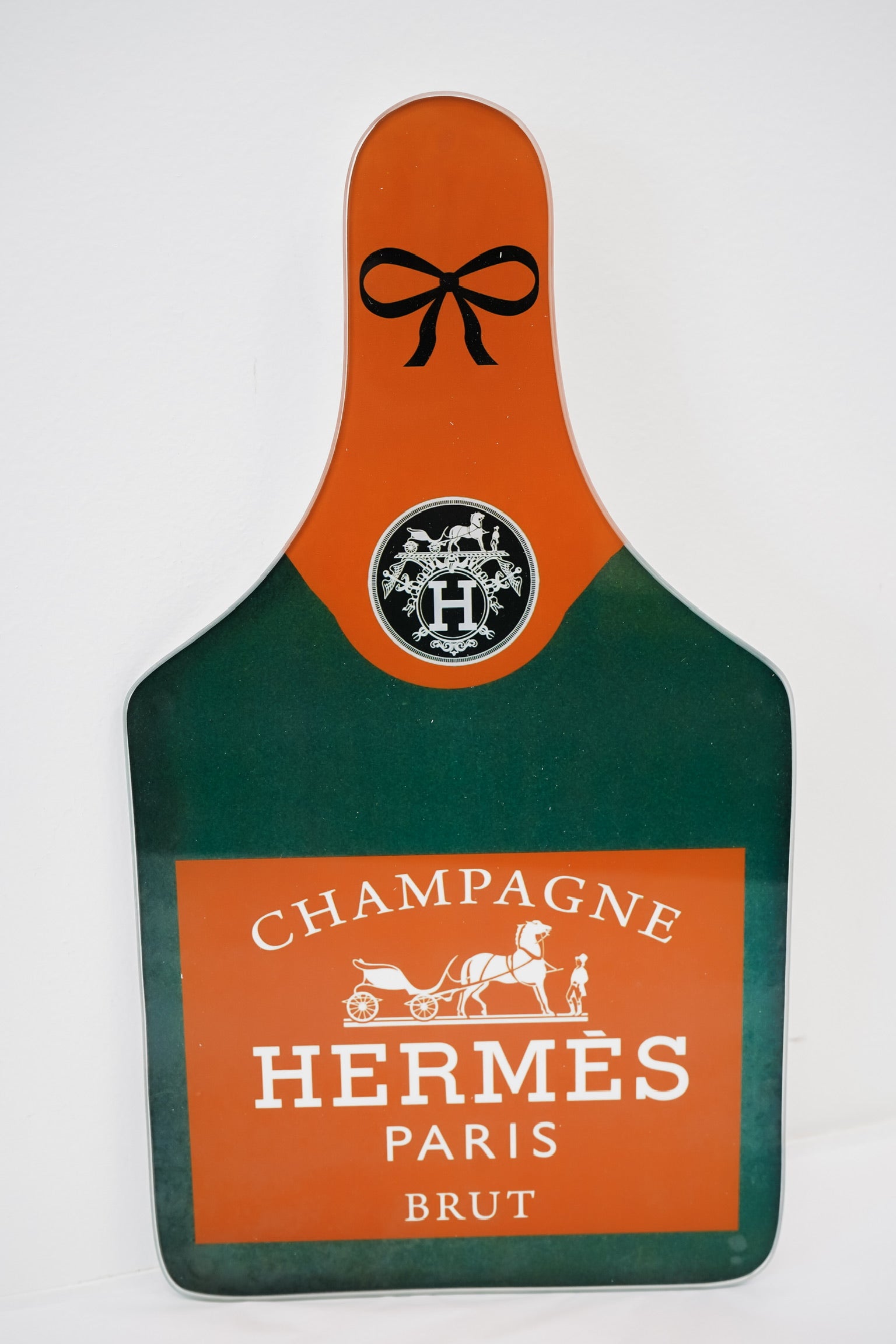 Jazz up your kitchen with this champagne bottle shaped glass cutting board featuring a fresh green + orange design. The rubber feet provide extra protection to your countertops while the sturdy glass adds durability. Get your slice of style today!