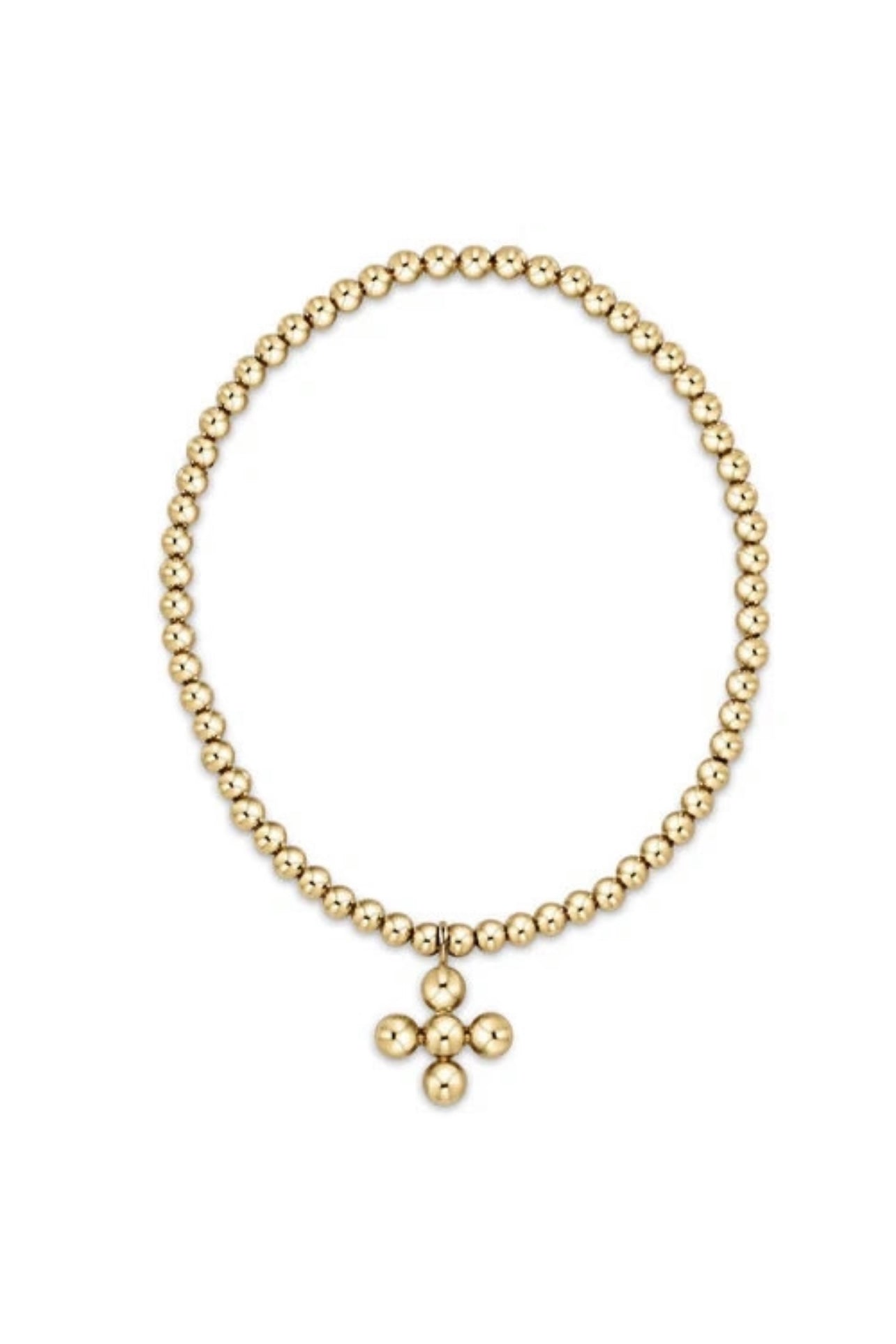 ENewton Classic Gold 3mm Bead Bracelet - Classic Beaded Signature Cross Gold Charm - 4mm Bead Gold
