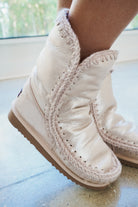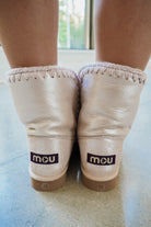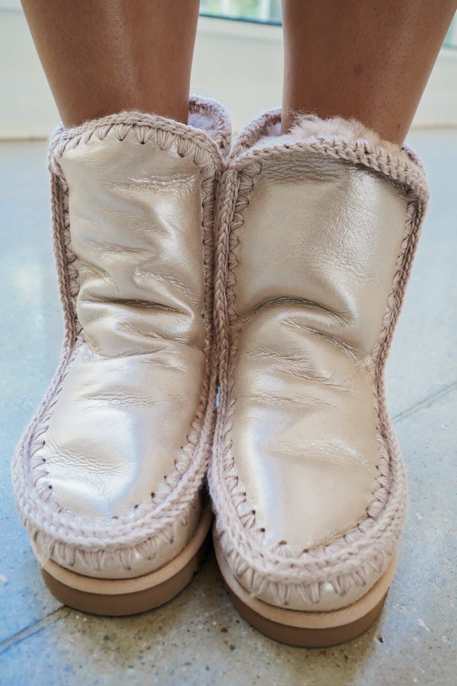 Our iconic mou eskimo range offers sophisticated color, understated design and artisanal craftsmanship. The fashionista's choice for winter, the eskimo is made with divinely warm double-face sheepskin, mou trademark hand-crochet wool stitching, a supportive heel counter and an EVA & rubber outdoor sole. Available each season in a selection of stunning microglitter and metallic finishes, the eskimo 24cm is chic, comfortable and hard-wearing. Height 24cm. Regular fit.