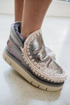 The mou eskimo bounce sneaker is artisanally handcrafted in genuine double-face sheepskin with mou trademark hand-crochet wool stitching. The lightweight EVA rubber sole makes this style incredibly comfortable to wear. Height 15cm.