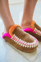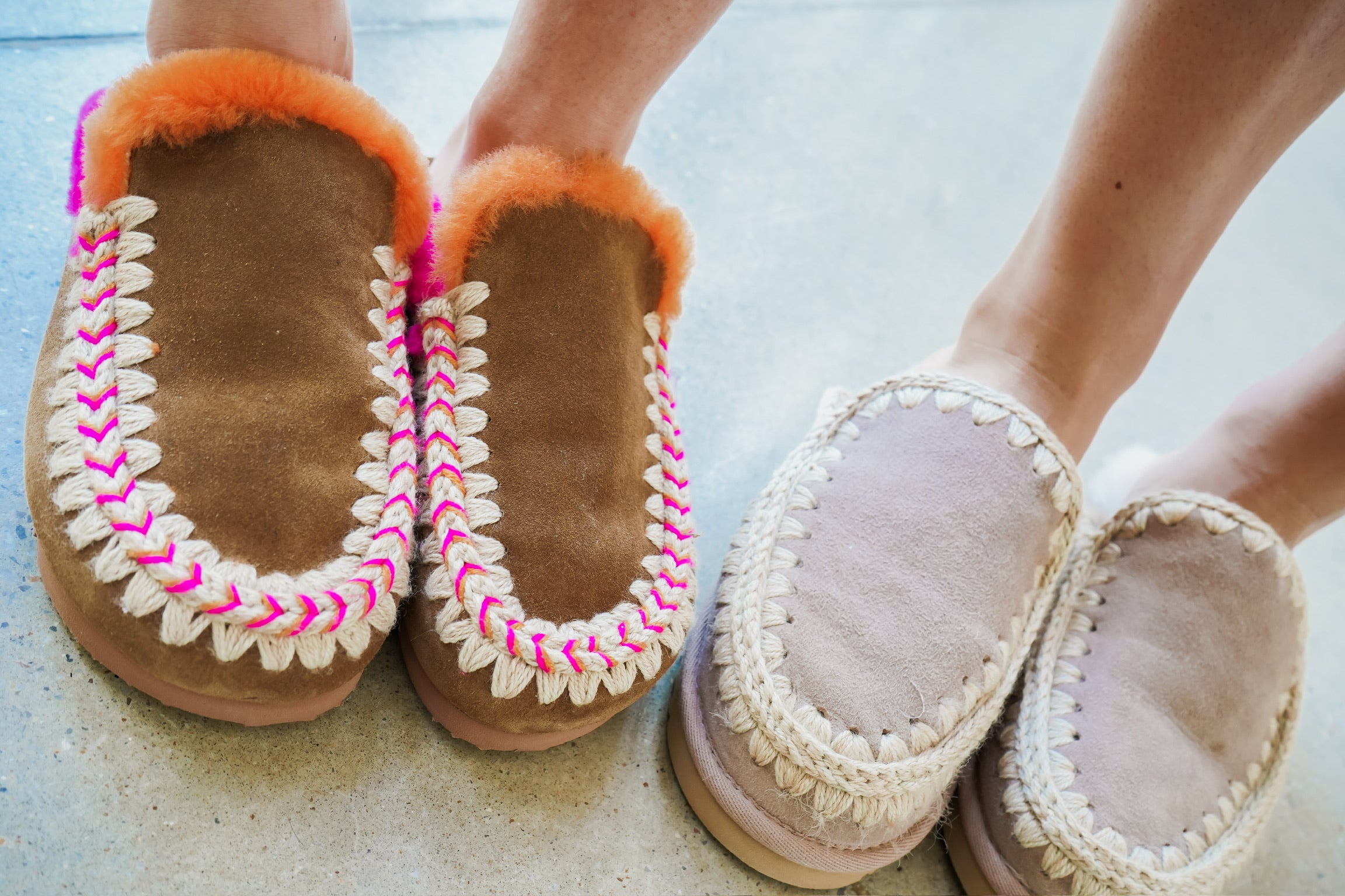 The winter bio overstitching is a vibrant addition for your wardrobe this winter. Artisanally handcrafted with decorative overstitch on mou trademark hand-crochet wool seams, the upper is made in premium suede and genuine sheepskin. The flexible outsole is crafted in light EVA & rubber for comfort and durability. Available in a range of colorful shades.