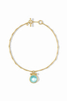 This necklace uses classic motifs to make a contemporary statement, its pendant featuring a pearl-capped length of golden bamboo atop a glittering round gemstone and dangling from a bamboo link chain with an adjustable toggle closure.