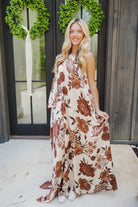 Step into elegance with the Amelie Maxi Dress, featuring a chic one-shoulder design that highlights your silhouette. The silky satin fabric is adorned with a charming cream and brown floral print, adding a playful yet sophisticated touch to any occasion. Perfect for twirling through warm evenings in style!