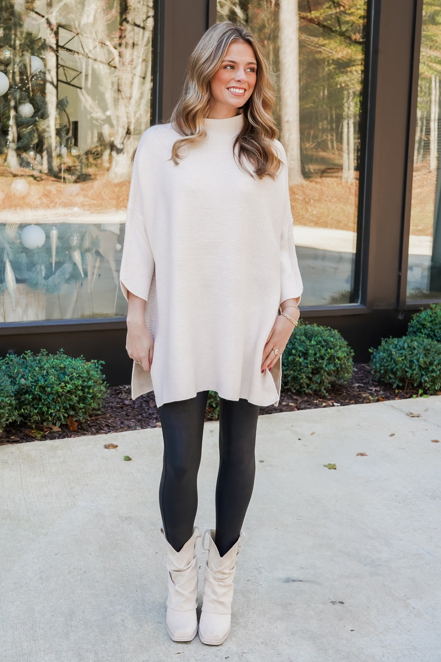 Your look will be in vogue any way you choose to style this turtleneck tunic. The sophisticated silhouette, side slit detail, and contrasting rib pattern are what make this piece a must have.