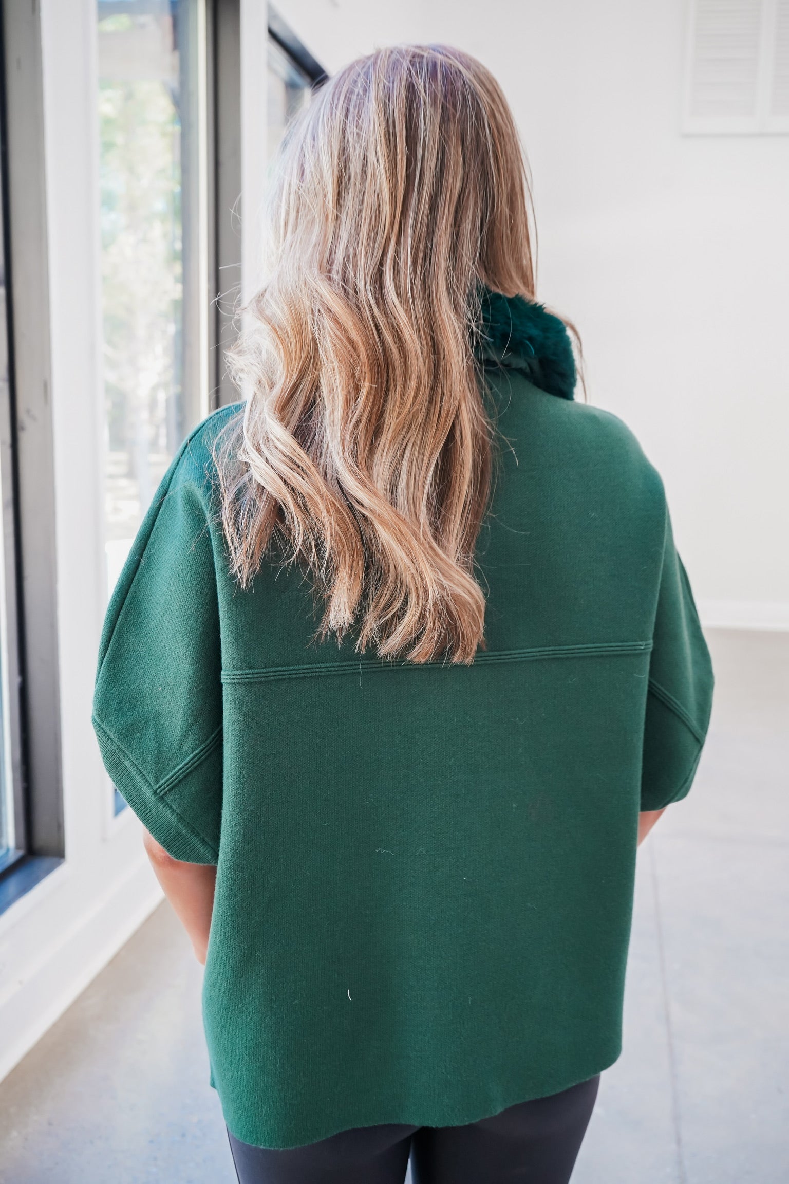 Faux Fur Trim Cardigan - Green