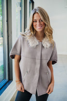 A chic addition to any wardrobe, our Short Sleeve Cardigan with Natural Fur Collar seamlessly combines comfort and elegance. Featuring a dropped shoulder design, its standout element is the luxurious 100% raccoon fur collar, which offers a touch of opulence. Hidden front snaps maintain a clean and polished aesthetic, making this cardigan a versatile choice for both casual and formal occasions.