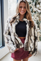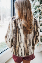 Wrap yourself in cozy luxury with the Fiona Jacket, where soft faux fur meets modern style. This playful piece features a striking neutral abstract stripe design that adds visual interest without overwhelming your wardrobe. The plush faux fur contrast creates dimension and texture, perfect for layering over your favorite outfits. Whether you're heading out for a casual day or dressing up for evening plans, the Fiona brings warmth and personality to any look. Effortlessly chic and undeniably comfortable.